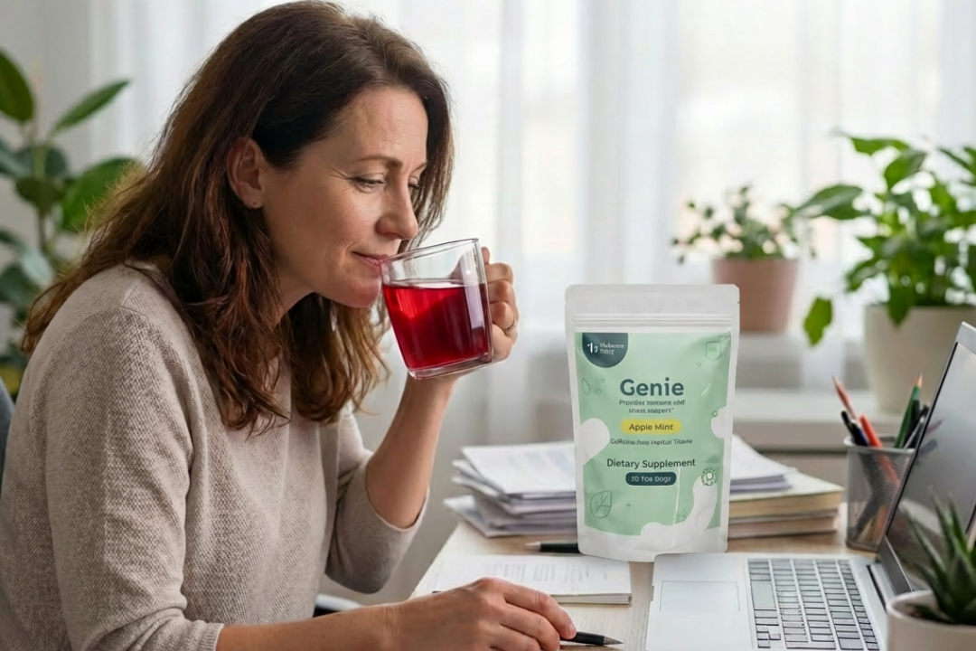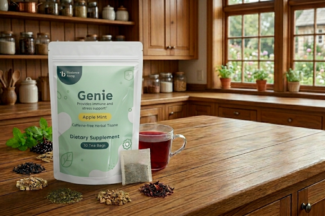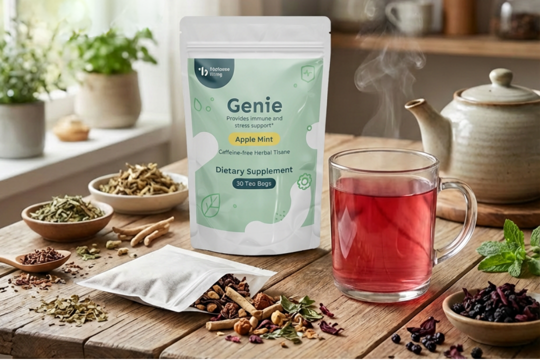 Because Genie is caffeine-free and contains Lemon Verbena and Holy Basil, it is versatile. You can drink it in the morning to find a "calm focus" for work, or in the evening to signal to your body that it’s time to decompress and prepare for restful sleep.